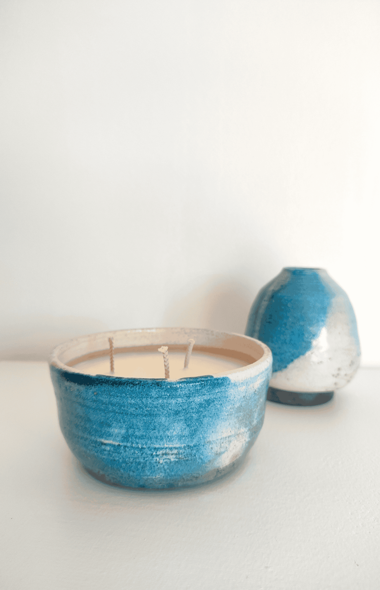 Cette bougie au parfum délicat ( au choix : monoi, sucre d’orge ou ambre patchouli) réalisées au tour de potier est unique, avec sa couleur bleu cobalt et ses aspects craquelés, elle offrira à votre intérieur une note de douceur. La bougie est composée de cire naturelle de soja.